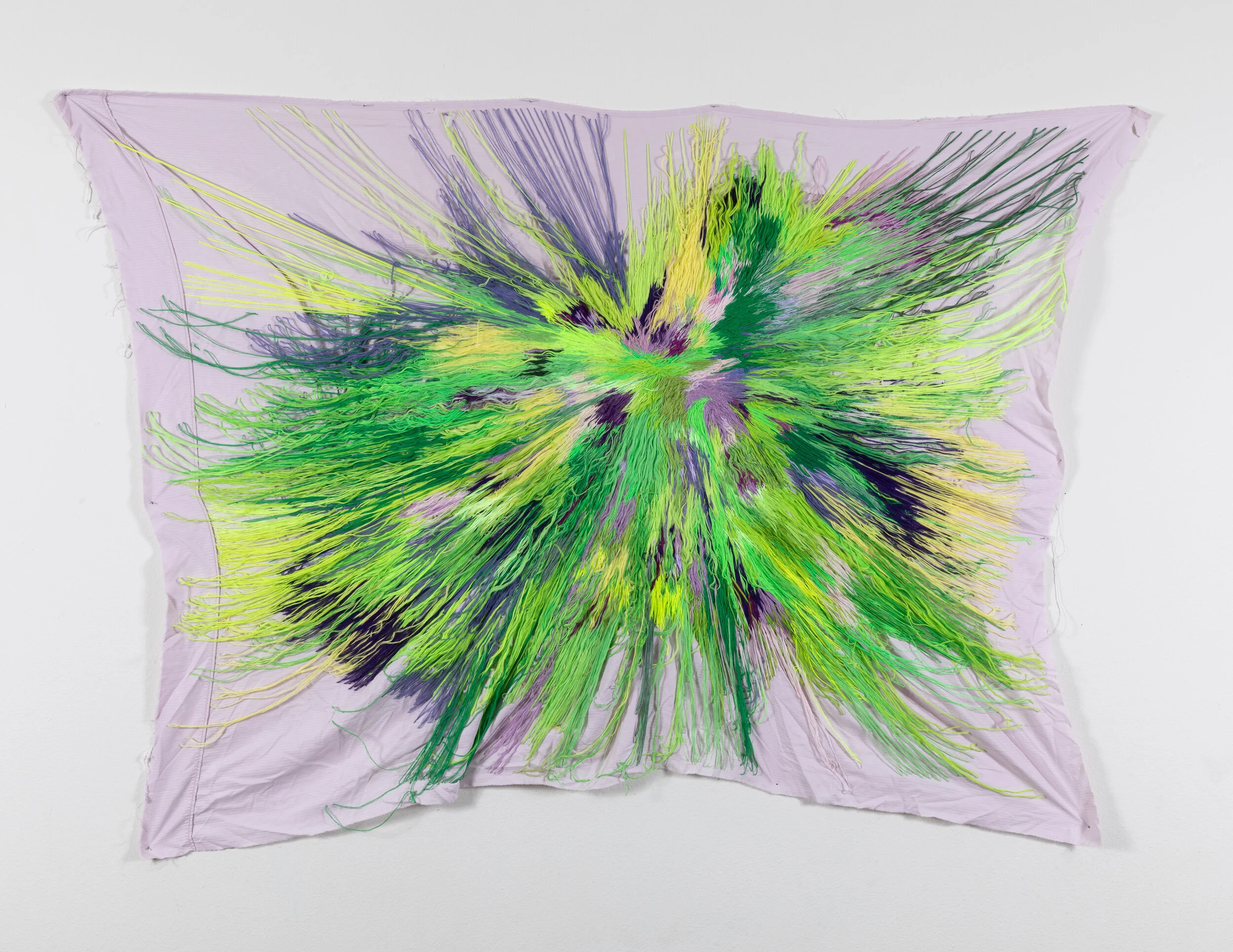 95 x 103 inch, Hand embroidery and patchwork on used fitted sheet, 2020